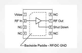 型号 | 描述 | 频段(GHz) | 增益 | P1dB | IP3 | 噪声 | Vs | Is | 工作温度 | 封装 |